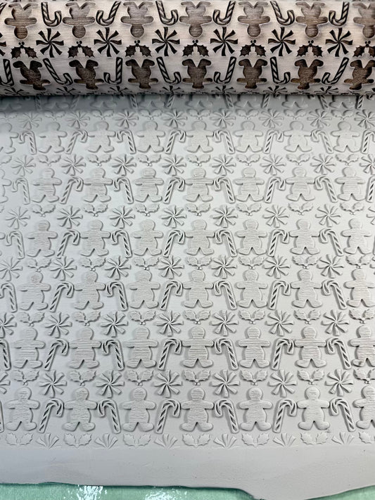 Gingerbread Men & Candy Canes Textured Rolling Pin