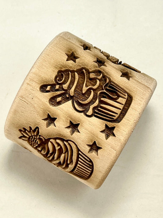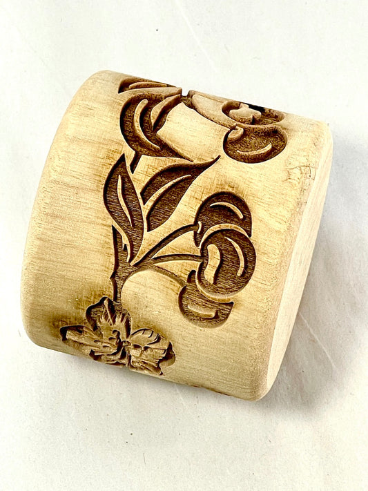 2" Cherry & Cherry Blossoms Textured Rolling Pin