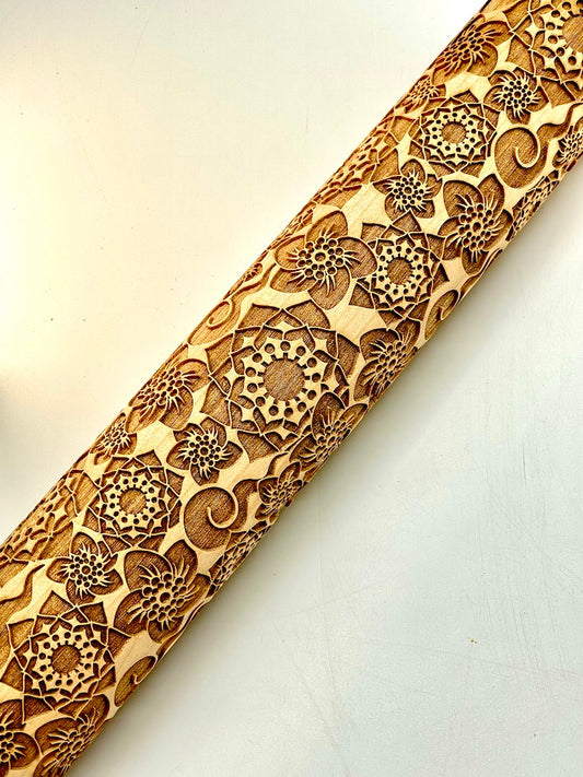 7" Dragon Floral Textured Rolling Pin