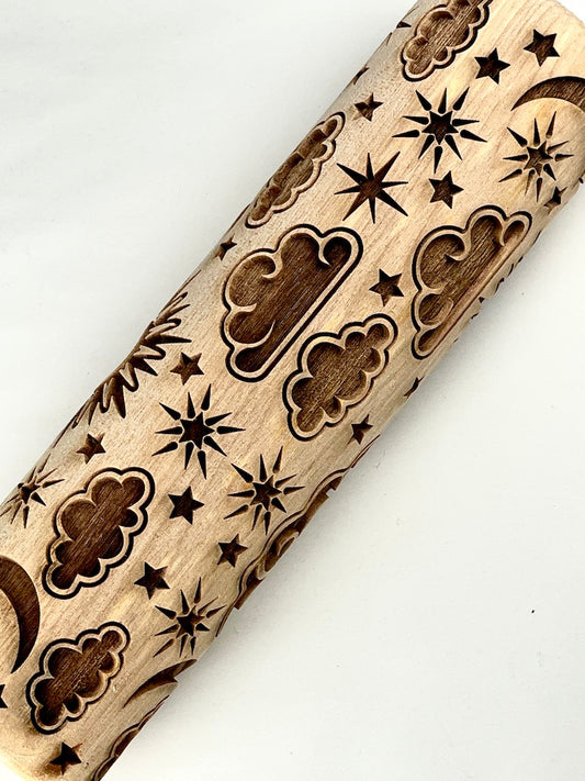 7" Sun, Moon and Stars Textured Rolling Pin