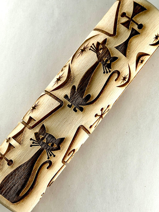 7" Cats, Mid-Century Textured Rolling Pin