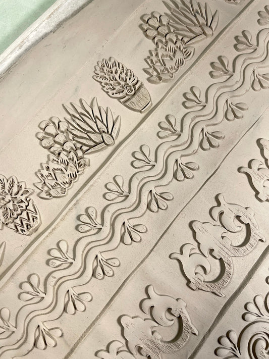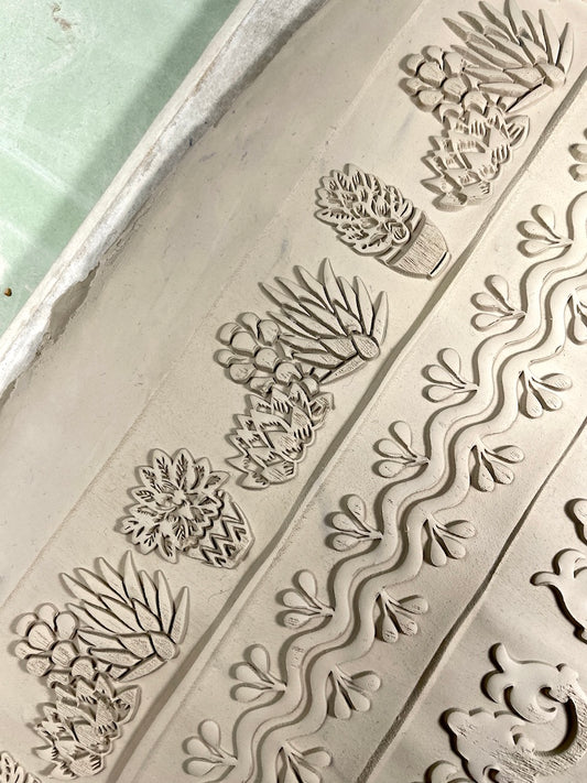 2" Mexican Talavera Tiles (Style 2) Textured Rolling Pin