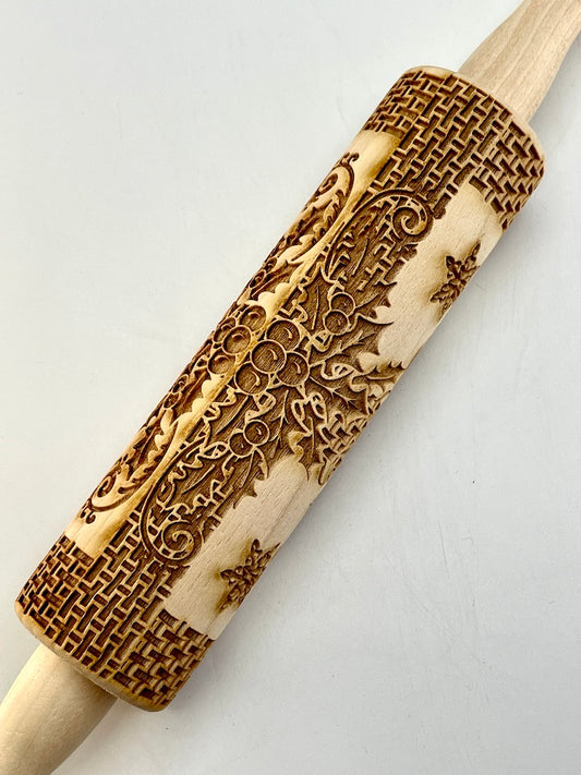 7" Cherry Blossoms & Cherries Textured Rolling Pin