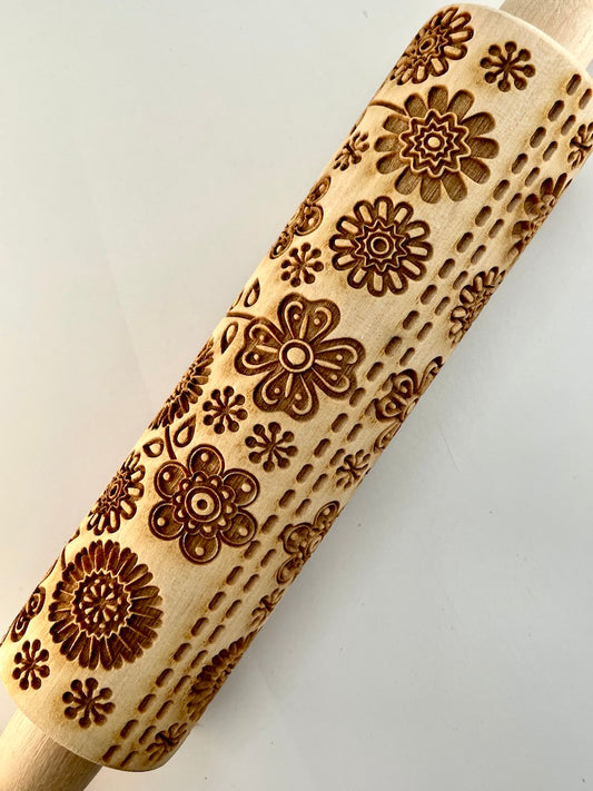 2" Cherry & Cherry Blossoms Textured Rolling Pin