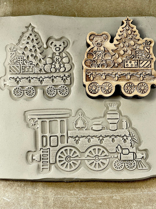 Elves on the Train (Bear & Tree Car)- Stamp