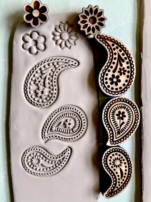 Paisley coordinated (flowers & stars) Textured Rolling Pin