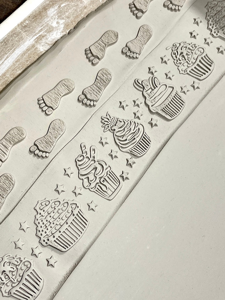 One of our most popular "Sweet" designs now in 2" textured rolling pin form! The 2" "Cupcakes" textured rolling pin features a variety of highly detailed, delectable cupcakes topped with fluffy icing, sweet toppings and all accented by a fun star background. This design is simply too good to pass up!