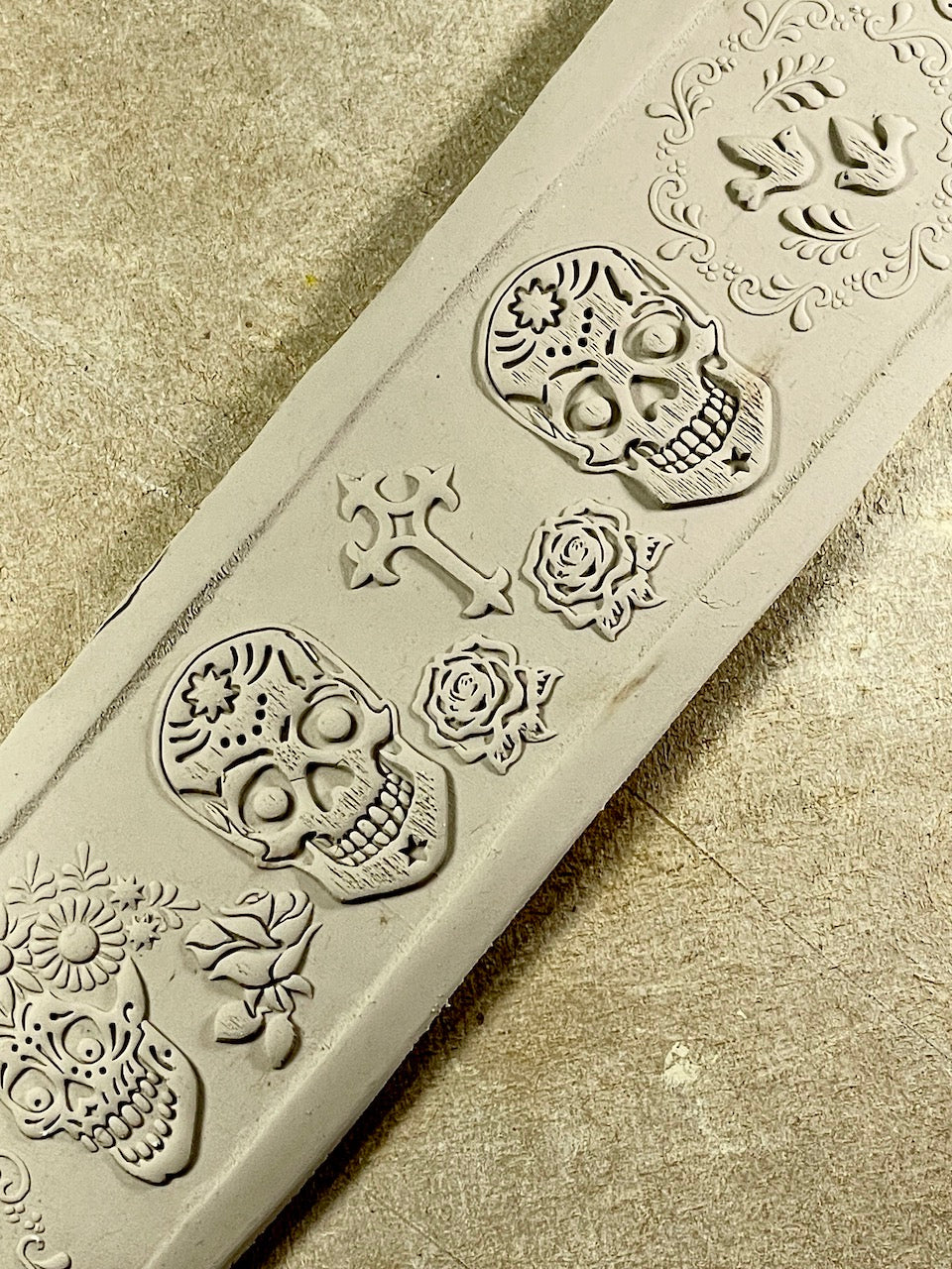 Be sure to check out the coordinating "Skeleton Wedding" Stamp, 7" Rollers (available in two styles), 12" Roller and the Textured Mug Plank.