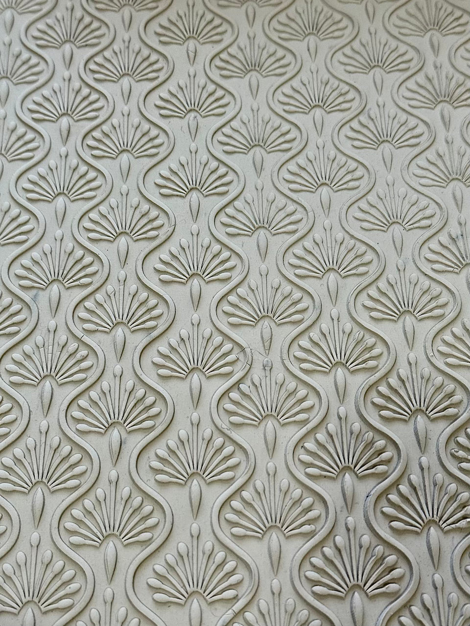 Step into the glamour of a golden era & infuse your creations with the quiet glamour of the "Art Deco Bud Vase" design. Inspired by the sweeping lines and bold symmetry of 1920s design, this pattern features a simplistic fan shape softened with delicate details- striking a perfect balance between structure and movement. The repeating fans create rhythm and depth, while the feathered accents add a light, almost floating quality to the surface. Ideal for Art Deco–inspired pottery, vintage-glam décor, statement serve ware or elegant baking projects, this design brings timeless sophistication to modern making. Whatever you wish to create- this design transforms each piece into something refined, dramatic, and beautifully styled.