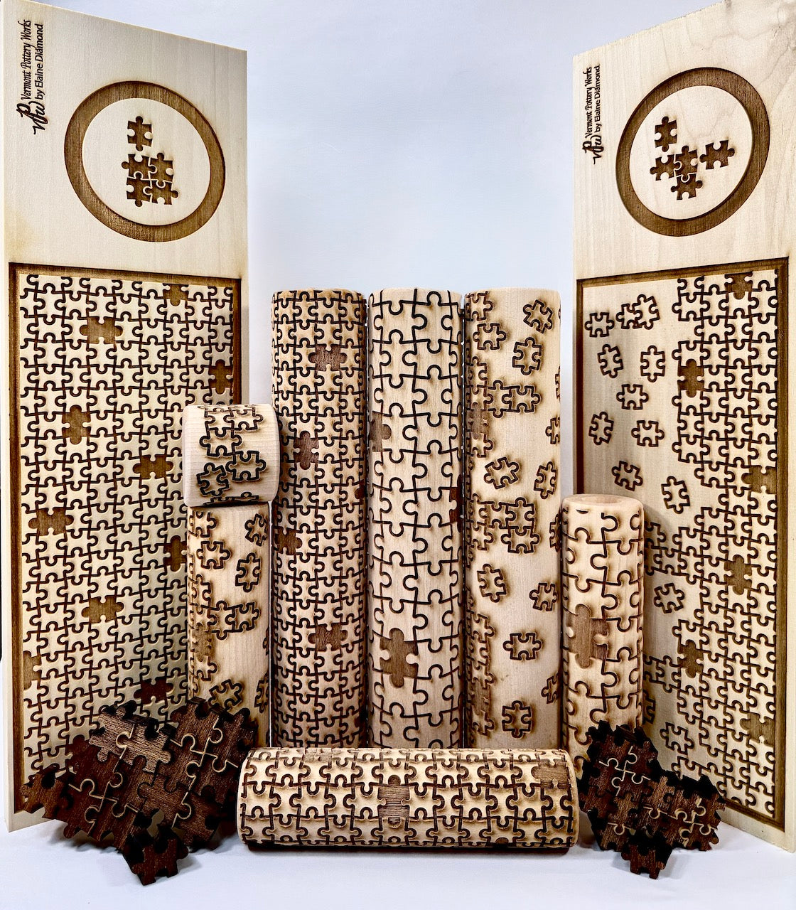 Be sure to check out the coordinating Jigsaw Puzzle stamps and stamp bundles as well as the 7" and 12" Textured Rolling Pins (available in 3 different styles!), the 2" Textured Roller and 2 different "Jigsaw Puzzle" Textured Mug Planks to complete your "Jigsaw Puzzle" collection!