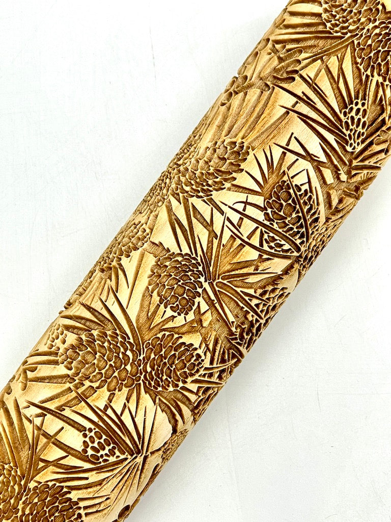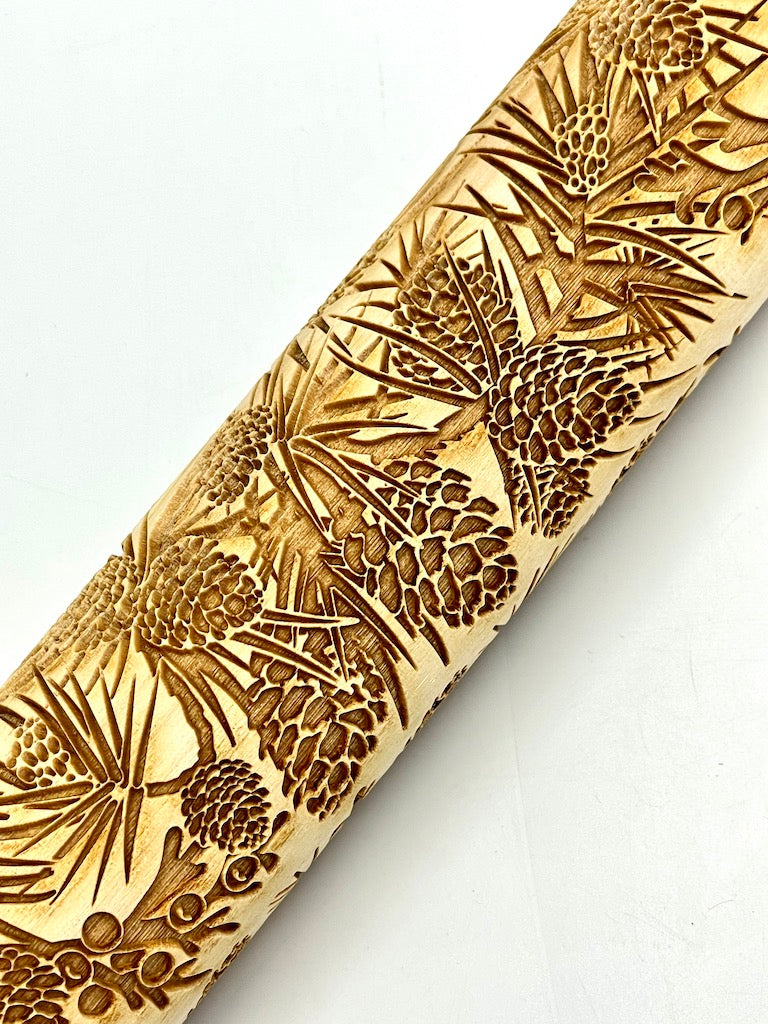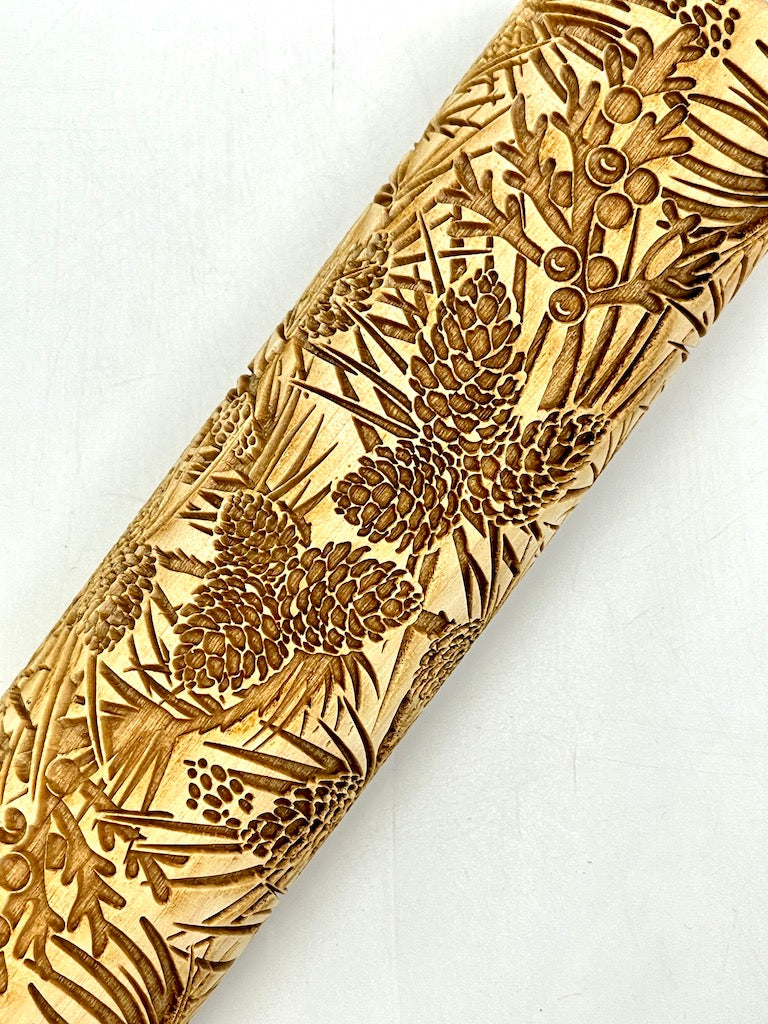 7" Textured Rolling Pin in the "Pine Boughs" design.