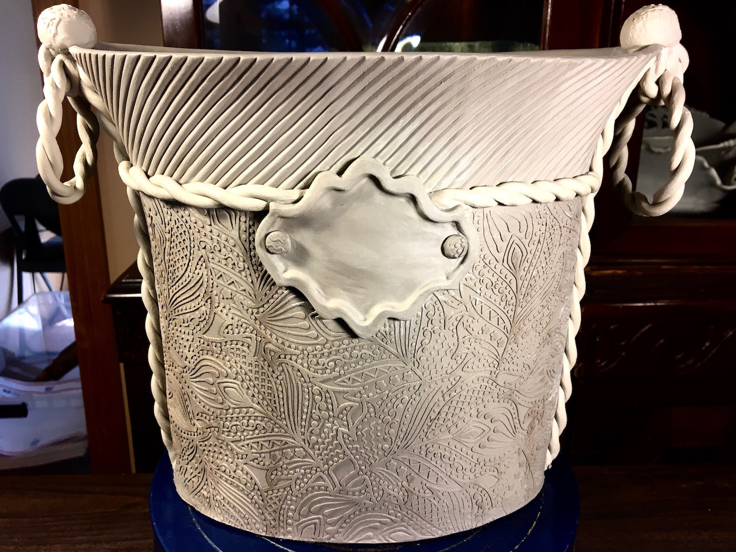 Abstract leaves container, greenware