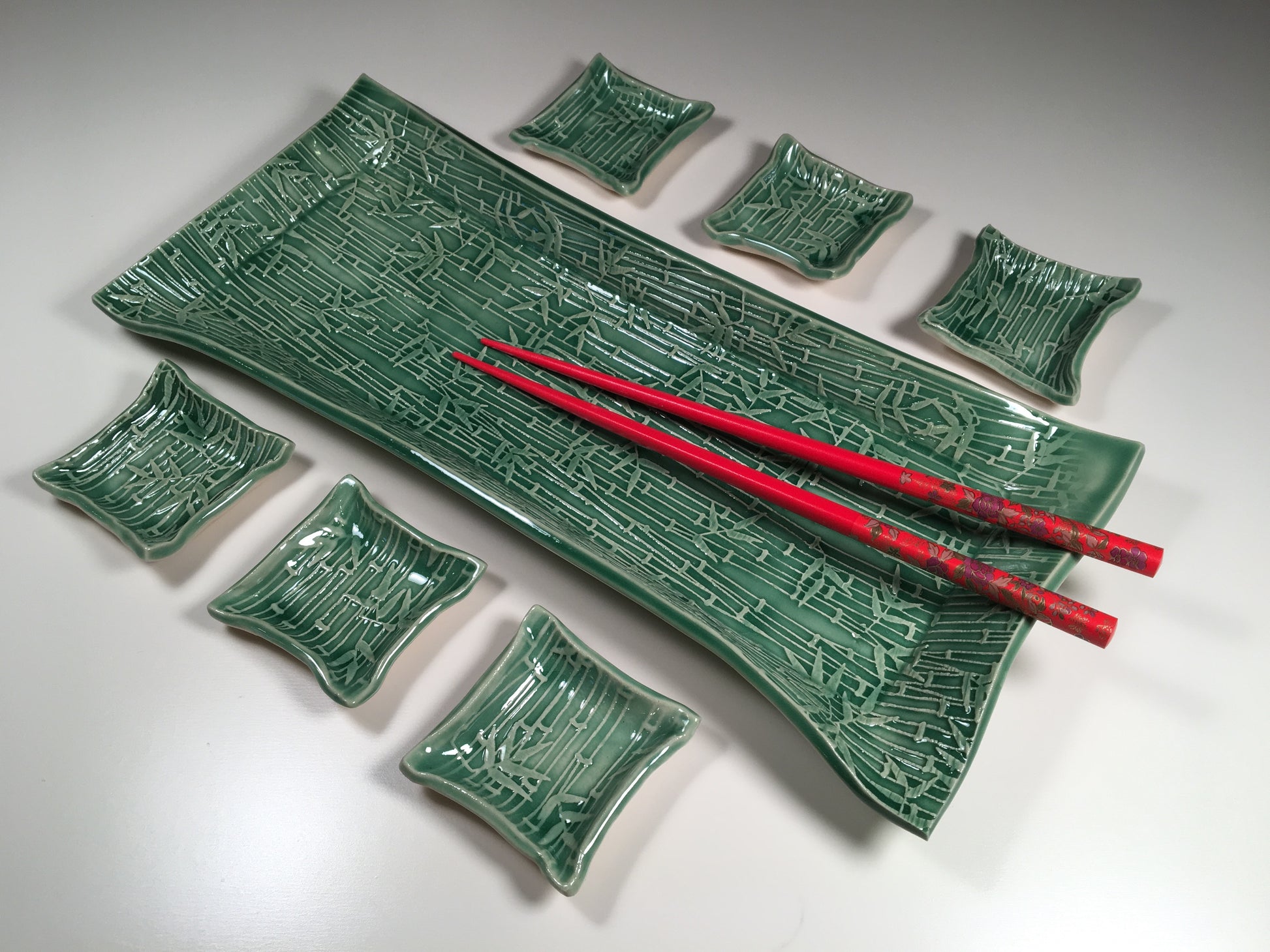 Bamboo sushi dish set, glazed