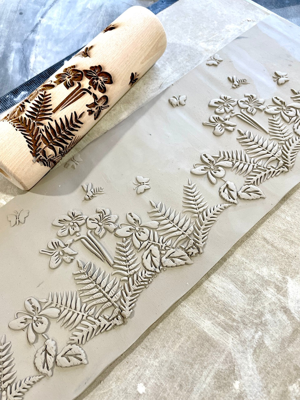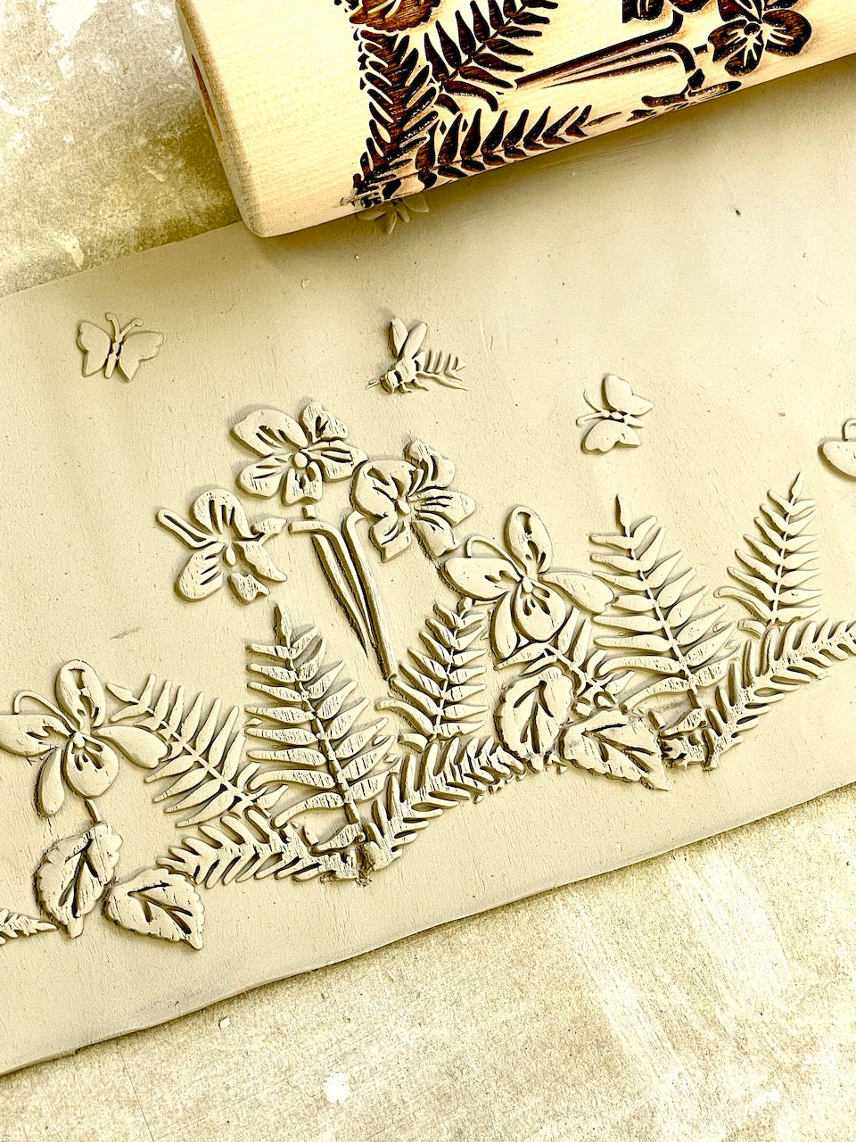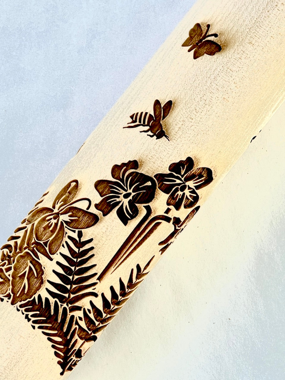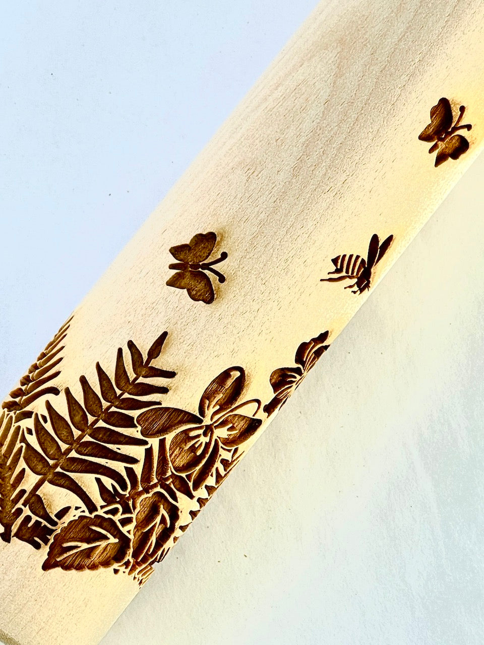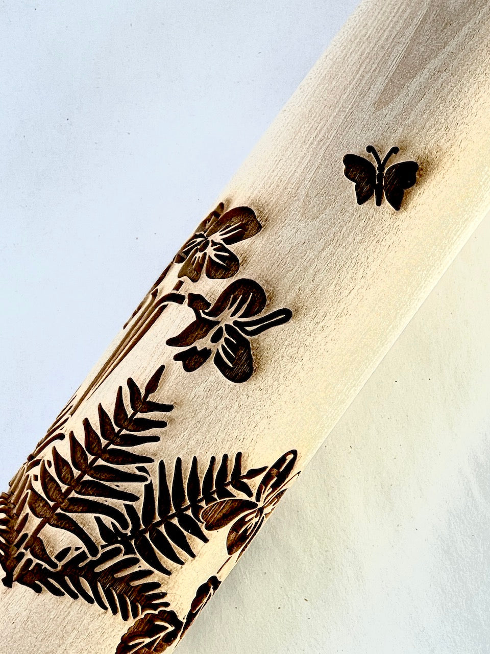 7" Fern, Violets & Butterflies Textured Rolling Pin