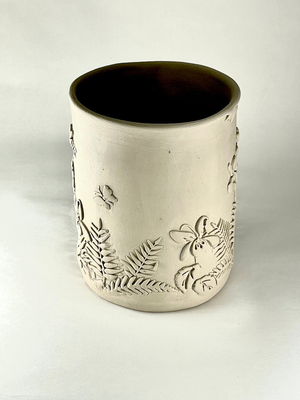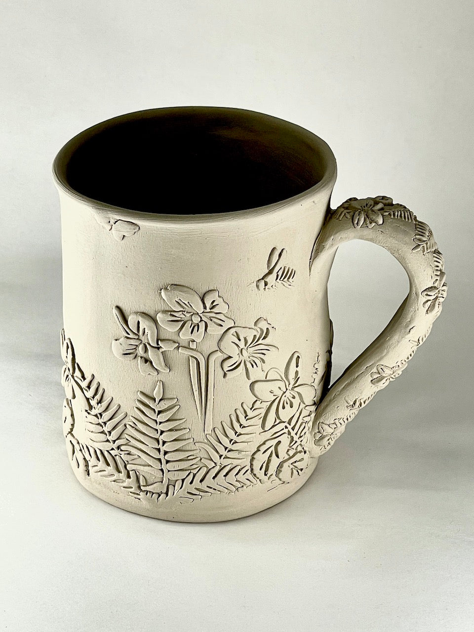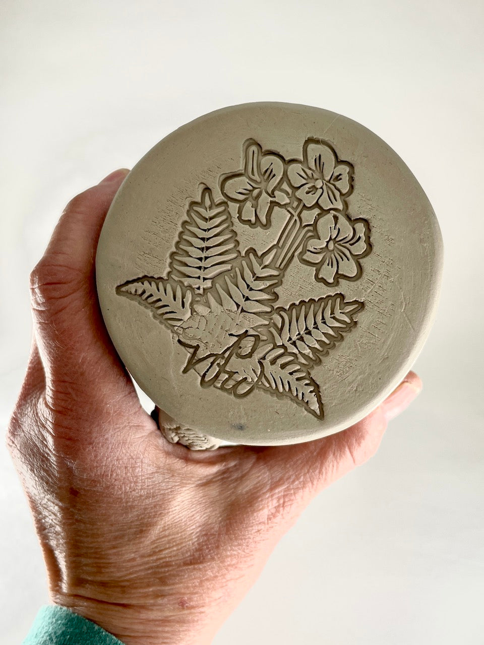 A wonderful, new twist on all things warm and whimsy! This design features intricately detailed butterflies & bees in flight, amongst a field of Ferns and Violets. A wonderful addition to anyone's collection! Pairs perfectly with the Fern, Violets & Butterflies textured mug plank, as well as the Violets rollers, plank and stamps collections.