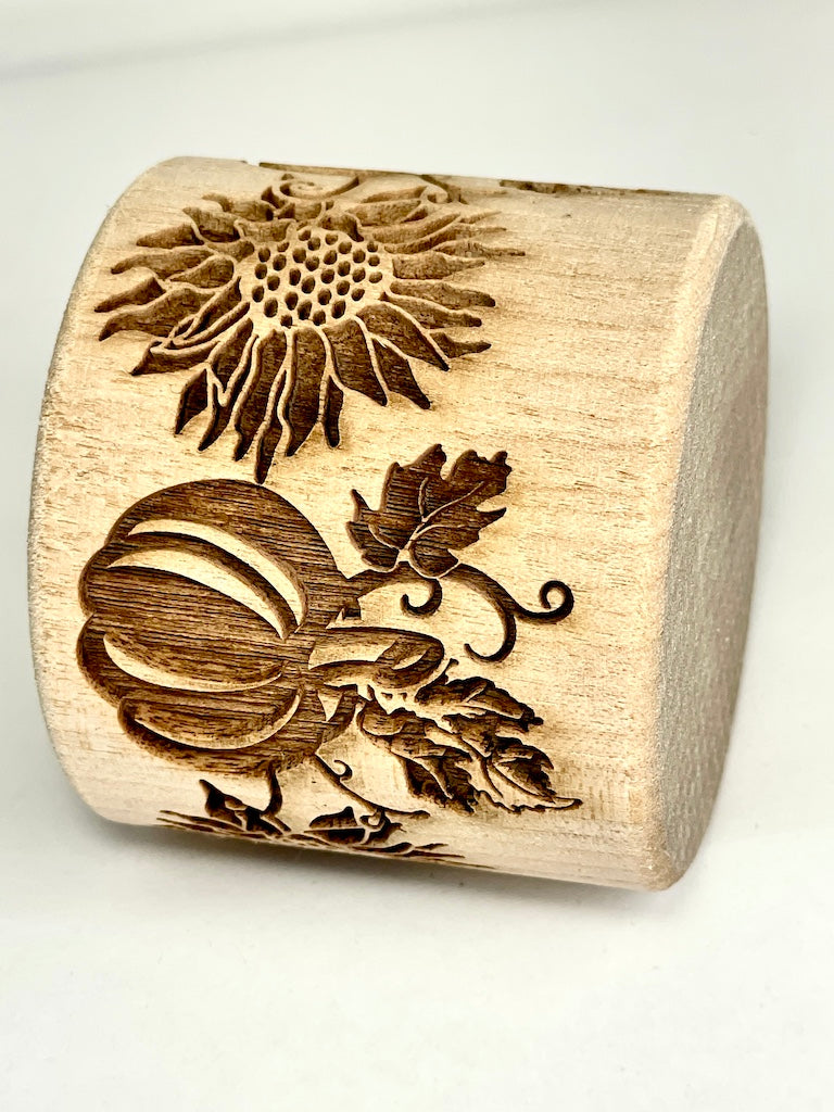 Part of our newest collection, this 2" Autumn textured rolling pin will make you "FALL" in love! Wonderfully detailed with pumpkins, leaves & vines and sunflowers, this design screams all things fun and festive that truly represent "Autumn". Be sure to check out the coordinating "Pumpkins", "Thanksgiving" & fall themed 12" Rollers, Textured Mug Planks and Curved Textured Mug Planks as well as our Autumn themed Stamps and stamp bundles.