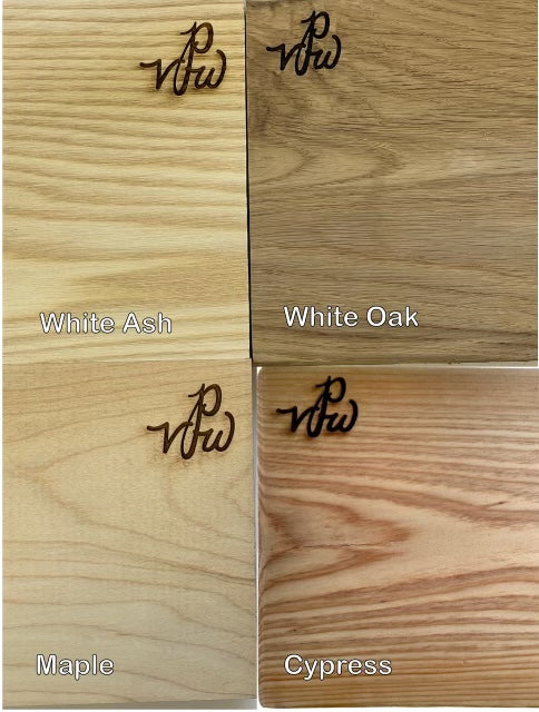 Wood Options: White Oak, Ash, Cypress & Maple.