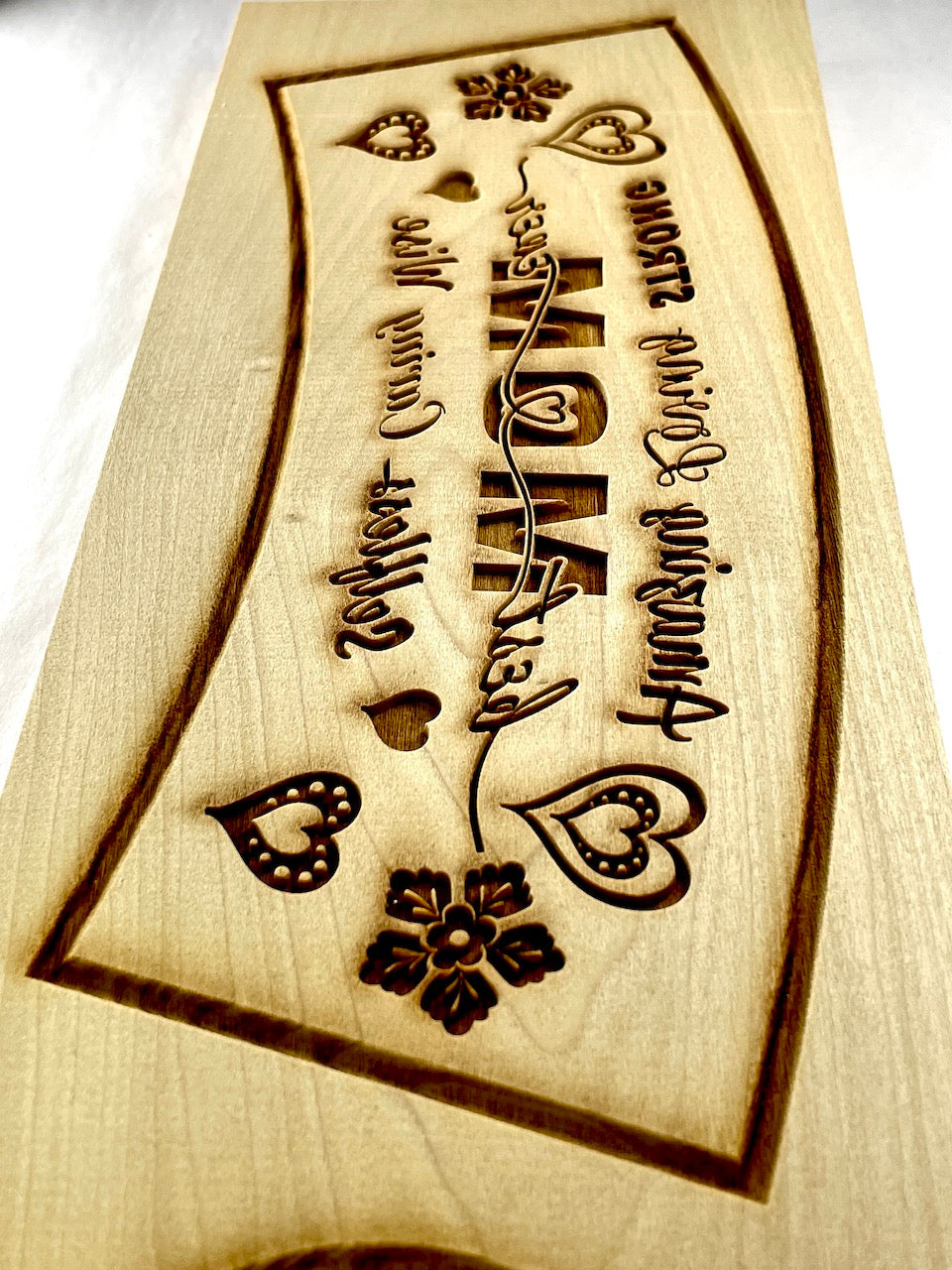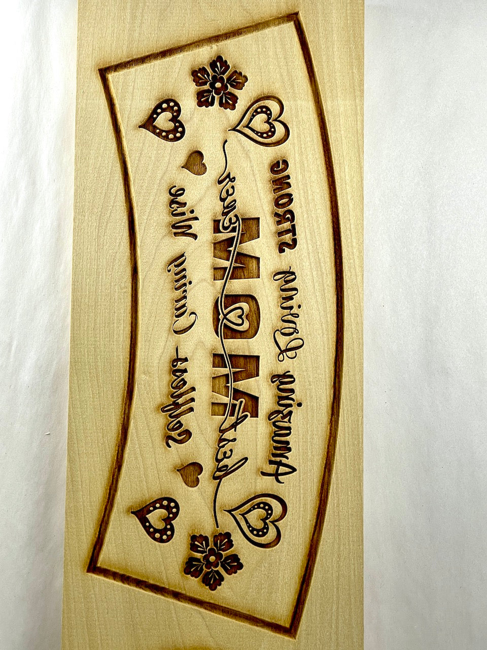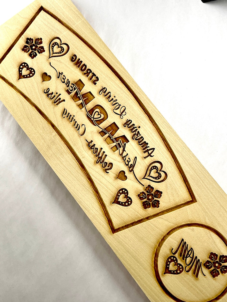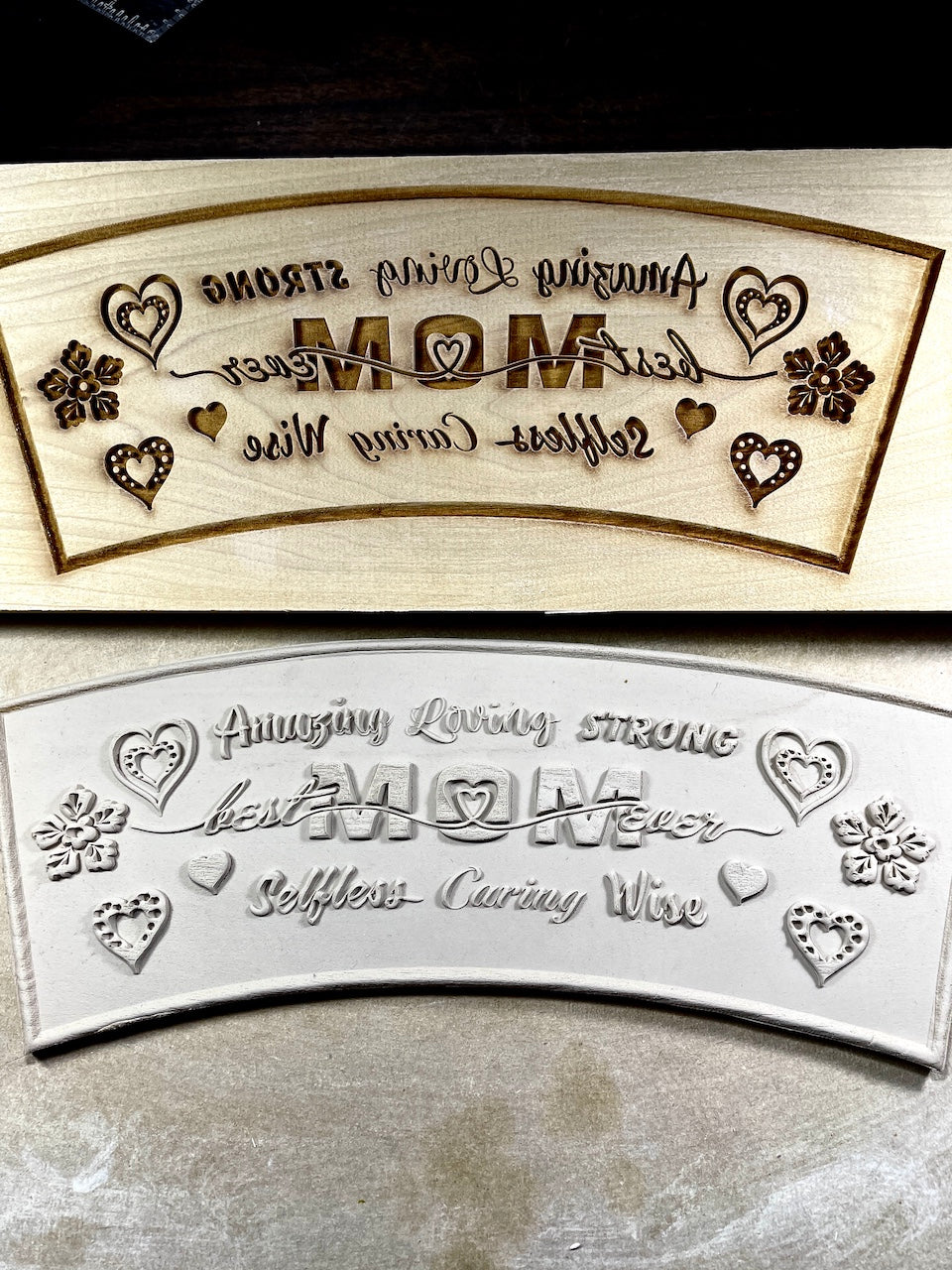 This beautiful new design celebrates Moms everywhere! Perfect for Mother's Day, Birthdays, Holidays or simply "Just Because", this curved mug plank is a must-have for anyone's collection. The center reads "Best Mom Ever" and features a 'heart string" that stretches from "Best" to "Ever" and makes a heart in the center letter "O" in "Mom". The adjectives "Amazing, Loving, Strong" are detailed above the "Best Mom Ever" center design and below are the adjectives, "Selfless, Caring, Wise". A variety of hearts also accent this beautifully sentimental design adding to its beauty.