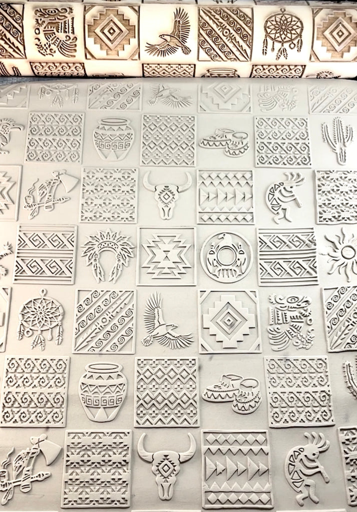 This Southwest inspired design is one of 24 stamps in the Southwest Collection. This stamp also coordinates with the Southwest Textured rolling pins, boarder texture and Mug Plank.