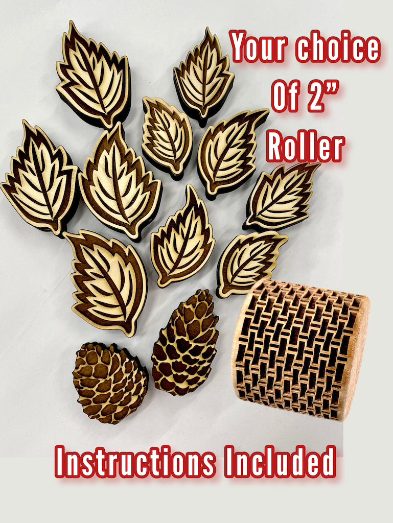 Wreath Making Kit- Large Leaves, Pinecones & 2" Roller- Stamp Bundle