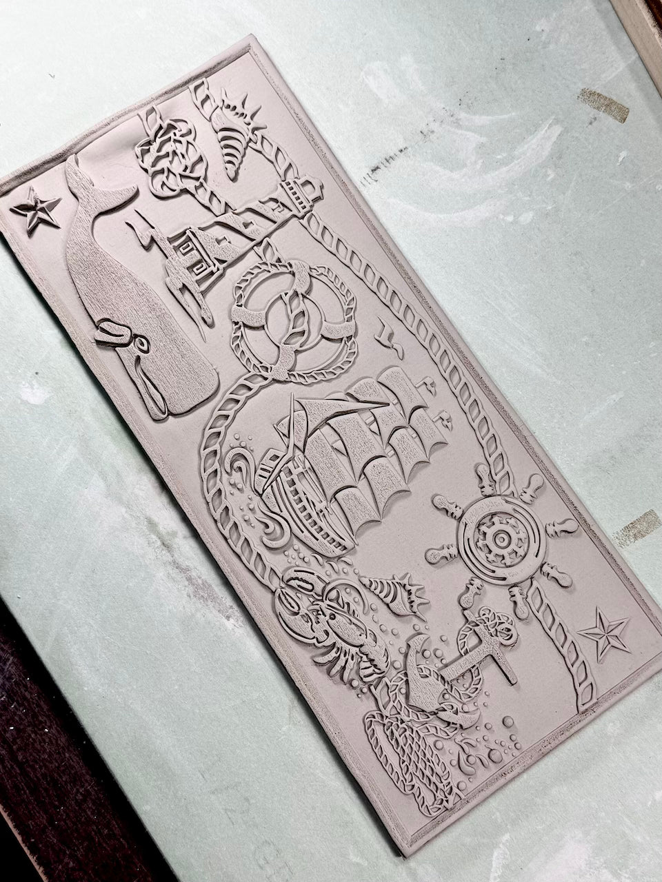Infuse your work with the authentic seaside character that is "Nautical Vibes". Crafted with the sea-lover in mind, this beautiful nautical design is thoughtfully composed with flowing rope details, graceful whales, classic anchors, and steadfast lighthouses. Each element reflects the rhythm and romance of coastal life, creating a pattern that feels timeless, balanced and full of story. This design brings the calm strength of the sea to every creation. Whether you’re shaping clay or rolling dough- this pattern captures the enduring beauty of life by the shore!