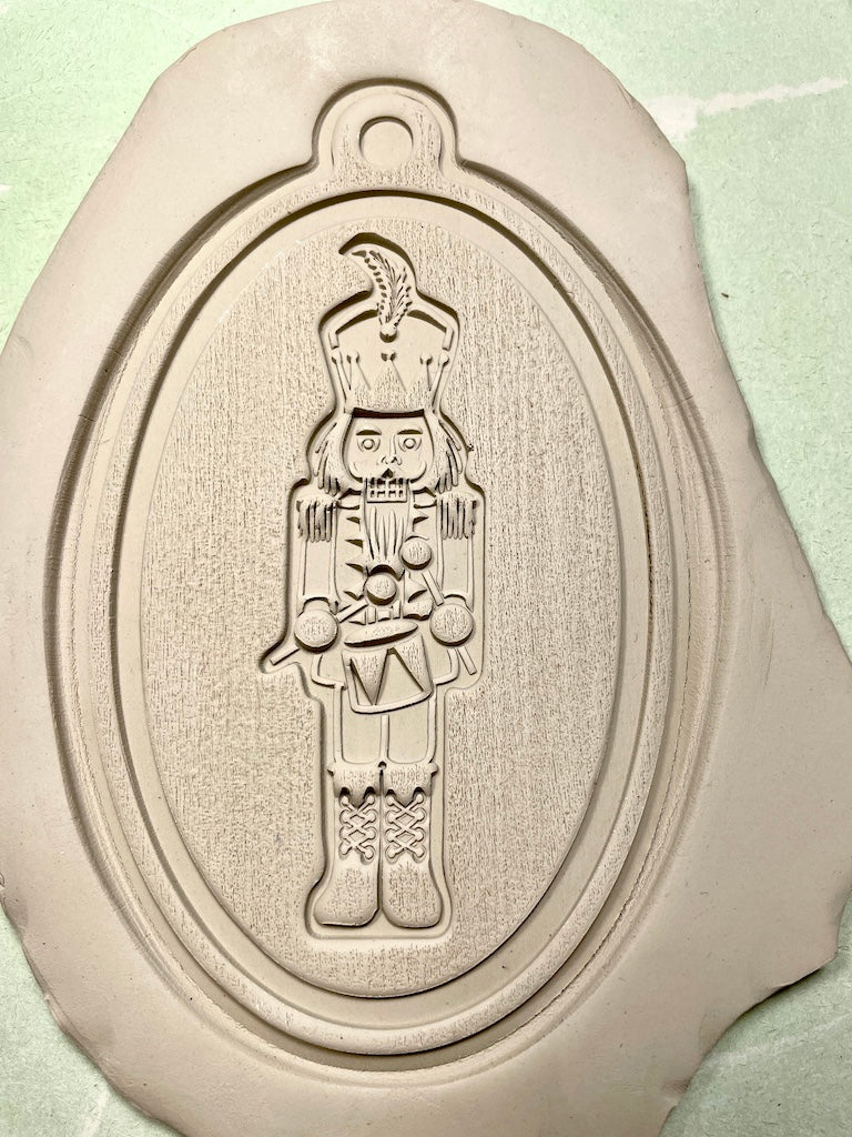 This ornament stamp coordinates with the Nutcracker Textured Rolling Pins, Mug Plank and the Nutcracker stamps or stamp bundle.